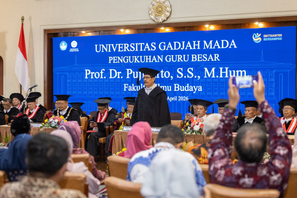 Dosen Program Studi Bahasa dan Sastra Indonesia, FIB UGM, Prof. Dr. Pujiharto, S.S., M.Hum., dikukuhkan sebagai Guru Besar Bidang Sastra Pascamodern di Balai Senat, Gedung Pusat UGM, pada Selasa (14/2). Dalam Pidatonya yang bertajuk Sastra Indonesia Pascamodern, Pujiharto memaparkan pergeseran fundamental dalam lanskap kesusastraan Indonesia, khususnya transisi dari era modernisme menuju era pascamodern. Ia menegaskan bahwa memahami sastra pascamodern bukan sekadar melihat urutan waktu, melainkan memahami perubahan puitika. “Sastra pascamodern Indonesia mengangkat tema-tema ontologis. Puitika epistemologis mencirikan novel modernis, sedangkan puitika ontologis mencirikan novel pascamodernis,” ungkapnya.
